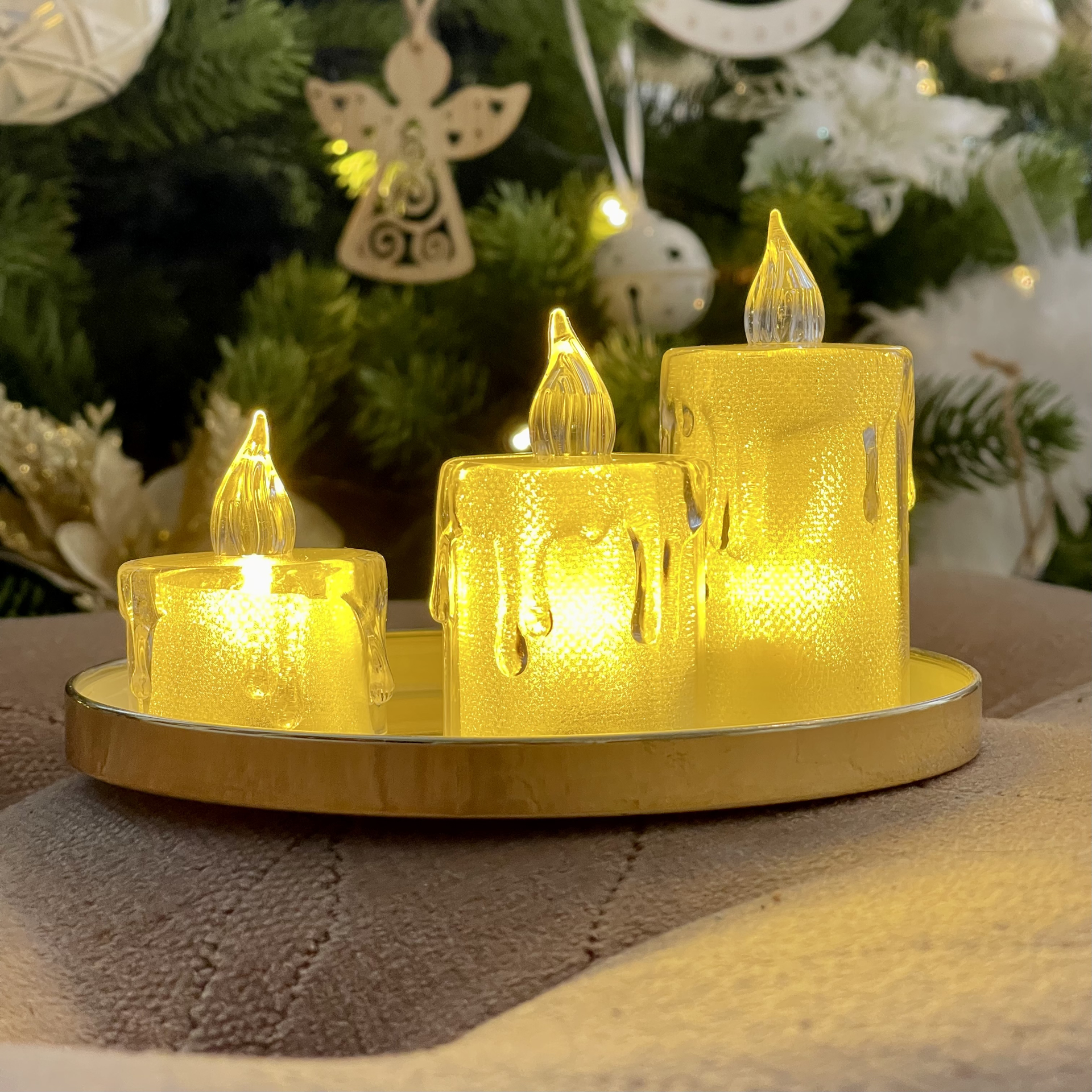 Dekoratívna LED sviečka na batérie. Napájanie na 3 tužkové batérie, 3x AAA batérie (ktoré nie sú súčasťou balenia). Osvetlenie nie je vhodné pre použitie v exteriéri. Titulná fotografia obsahuje 3 veľkosti sviečok. Súčasťou predaja je sviečka prostredná.