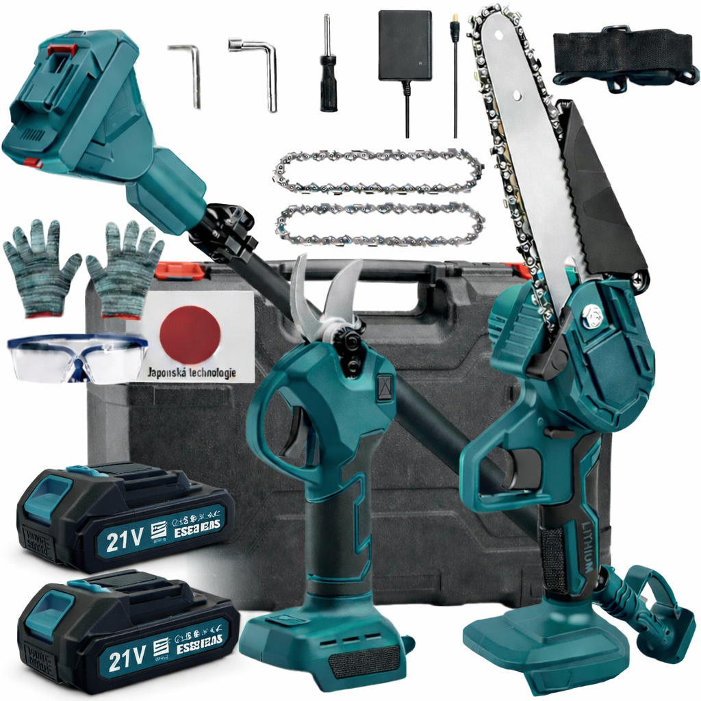 Chcete mať svoju záhradu dokonale upravenú bez zbytočnej námahy? Potom je naša AKU sada 3v1 presne to, čo potrebujete! Táto výkonná sada záhradného náradia kombinuje AKU pílku s teleskopickou tyčou, čo vám umožní pracovať efektívne ako pri zemi, tak aj vo výškach. A samostatne na použitie do tých nižších miest slúžia aku nožnice tie však s tyčou na kombináciu nie sú.
