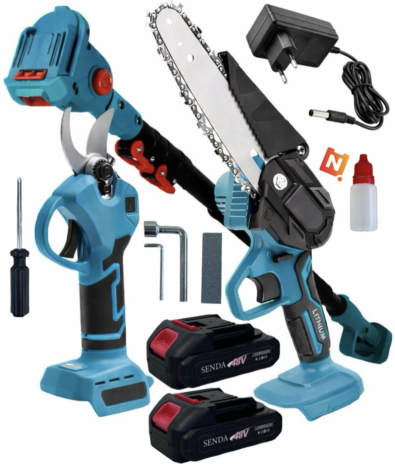 Chcete mať svoju záhradu dokonale upravenú bez zbytočnej námahy? Potom je naša AKU sada 3v1 presne to, čo potrebujete! Táto výkonná sada záhradného náradia kombinuje AKU pílu s automatickým mazaním, aku nožnice a teleskopickú tyč, čo vám umožní pracovať efektívne pri zemi aj vo výškach.
