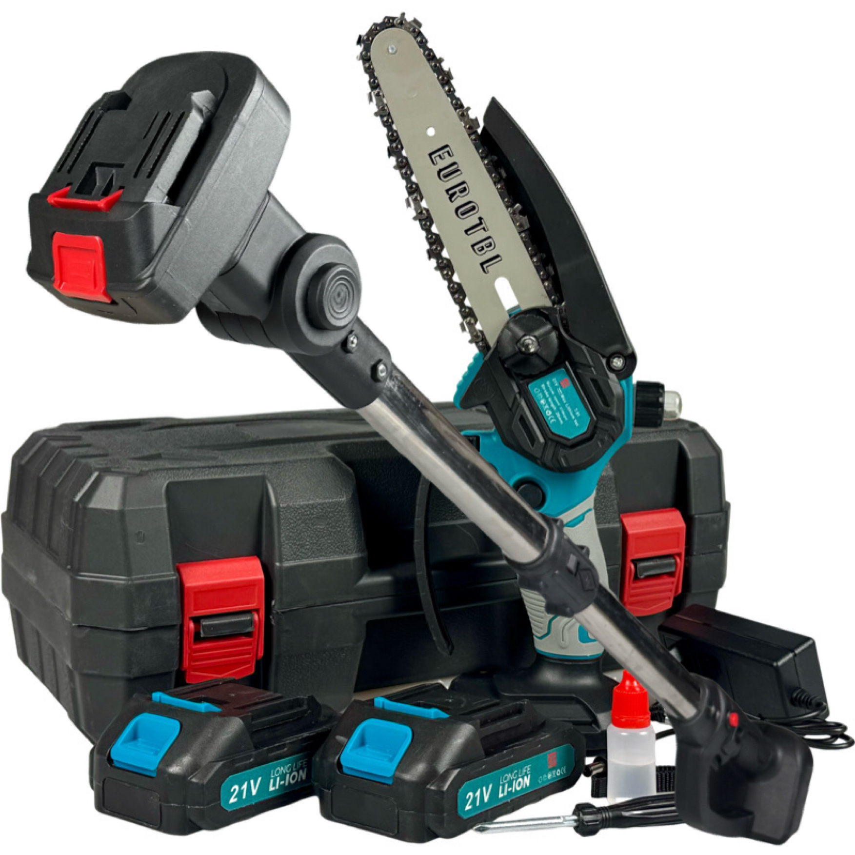Aku reťazová píla EUROTBL 6" s teleskopickou tyčou, 48V, automatickým mazaním a kufrom – ideálny pomocník pre každého záhradkára