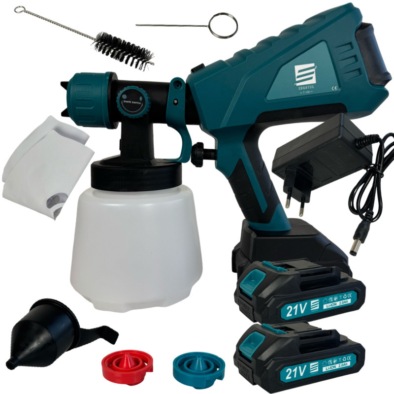 Akumulátorová striekacia pištoľ EUROTBL 21V je ideálnym riešením pre rýchle a rovnomerné nanášanie farieb v interiéri aj exteriéri. S maximálnou rýchlosťou striekania až 1200 ml/min, objemom nádržky 900 ml a tlakom 0.1–0.2 bar je perfektnou voľbou pre domácich majstrov aj profesionálnych maliarov.
