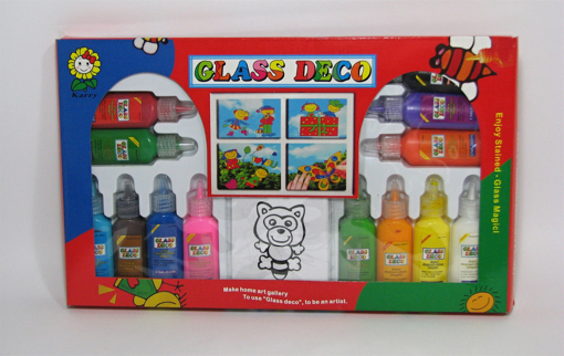 Sada třinácti slupovacích barviček na sklo. Obsah lahviček - 22 ml. Sada obsahuje i malé šablony a folie.