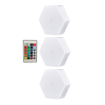 Jednoducho upevnite pomocou lepiacich podložiek (je súčasťou dodávky). Súprava 3 bezdrôtových LED svetiel s inovatívnym modulárnym systémom v tvare šesťuholníka a diaľkovým ovládaním. Sami sa rozhodnite, koľko svetla potrebujete. Každá lampa funguje samostatne. Podľa svojich potrieb môžete lampy ľubovoľne zapínať a vypínať jedným dotykom alebo môžu byť ovládané pomocou dodaného diaľkového ovládania. Svetlá je možné spájať a vytvárať tak rôzne kompozície