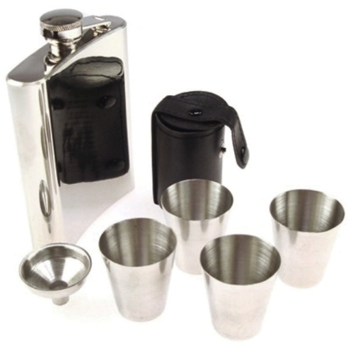 podrobnosti: 1x cestovná fľaša na alkohol 4x štamprle 1x lievik 1x obal na štamprle