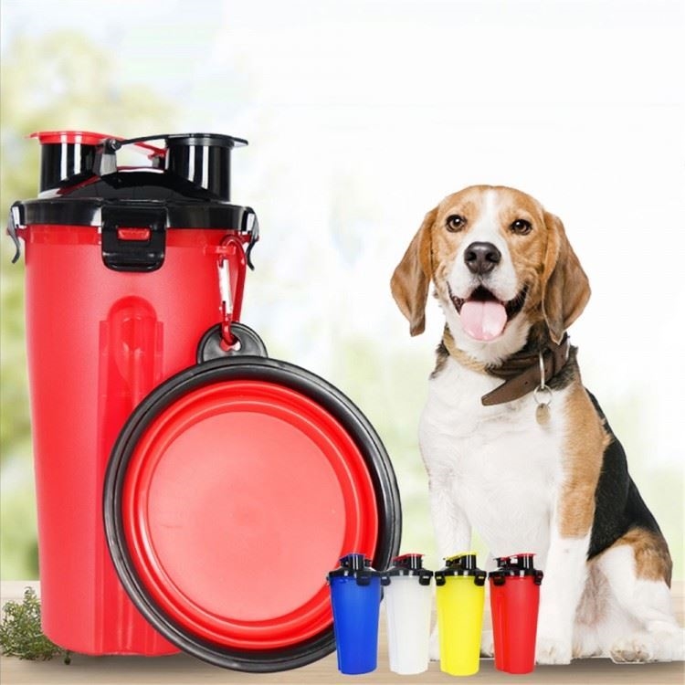 Praktická cestovná fľaša obsahuje dva vnútorné oddiely, do ktorých je možné prehľadne umiestniť krmivo alebo vodu pre vašich domácich miláčikov. Obe časti fľaše sú oddelené stenou, takže nehrozí, že by sa jednotlivé zložky potravy zmiešali dohromady. Súčasťou fľaše je aj silikónová miska, ktorá sa na fľašu pripína pomocou karabíny. Miska je rozkladacia, takže ju je možné kedykoľvek pripraviť a naplniť krmivom alebo vodou. Po použití môžete misku opäť ľahko zložiť a pripevniť späť na fľašu.