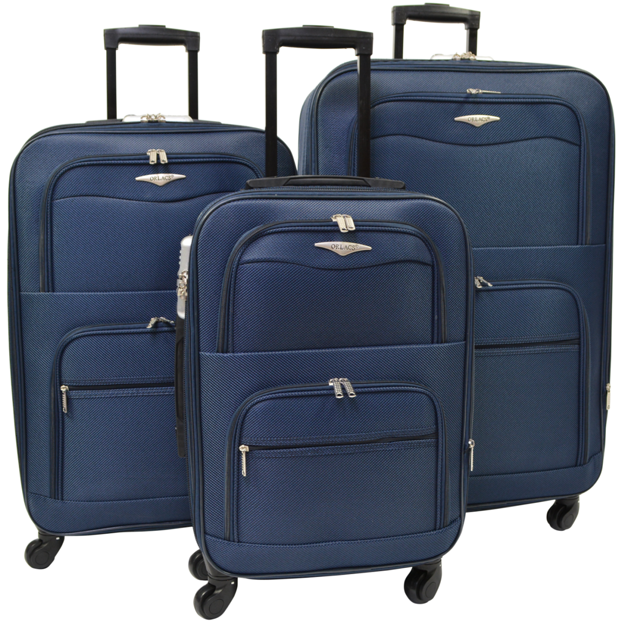 Sada cestovných kufrov pripravená na veľkú záťaž.Deliaca stena so zipsom po celom obvode umožňuje baliť veci z oboch strán.Malý kufor rozmerovo zodpovedá požiadavkám na príručnú batožinu.Pre úsporu miesta možno kufre vložiť do seba.Pohodlný transport: štyri kolieska otáčajúce sa o 360° s kvalitnými ložiskami.Veľmi dobre sa s nimi prekonávajú prekážky.Kufre majú dve držadlá. Tri zásuvné vrecká.Dvojcestný zips s očkami na upevnenie zámku.Pre úsporu miesta možno kufre vložiť do iného v tomto zhodnom postupnom označení S, M, L.Upínacie popruhy do kríža.Vrecko zo sieťoviny so zapínaním na zips.Ďalšie držadlo na dne - uľahčuje manipuláciu s kufrom.Teleskopickú rukoväť možno zaistiť.Pomocou zipsov možno zväčšiť objem zhruba o 20 %.