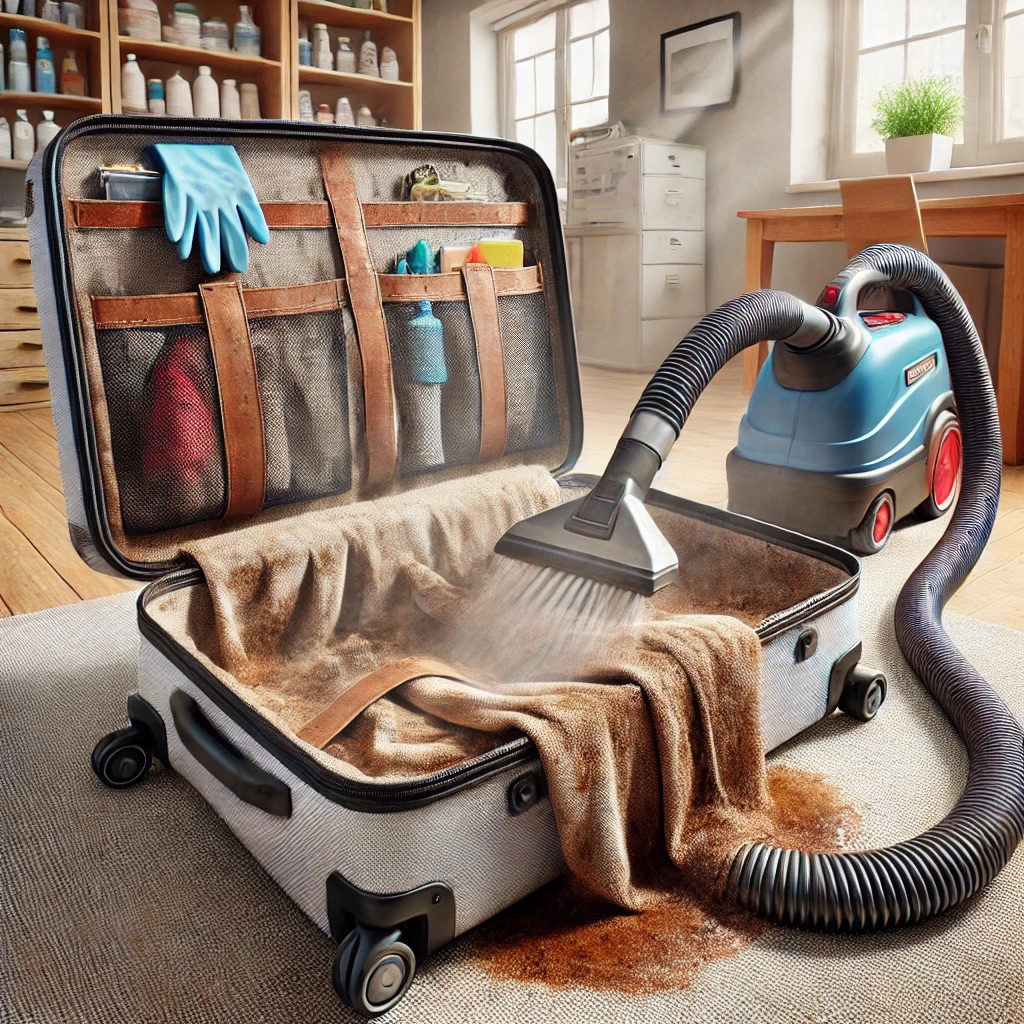Provedeme vyčištění vašeho cestovního kufru tlakovým tepovačem a speciálním přípravkem na hluboké skvrny.