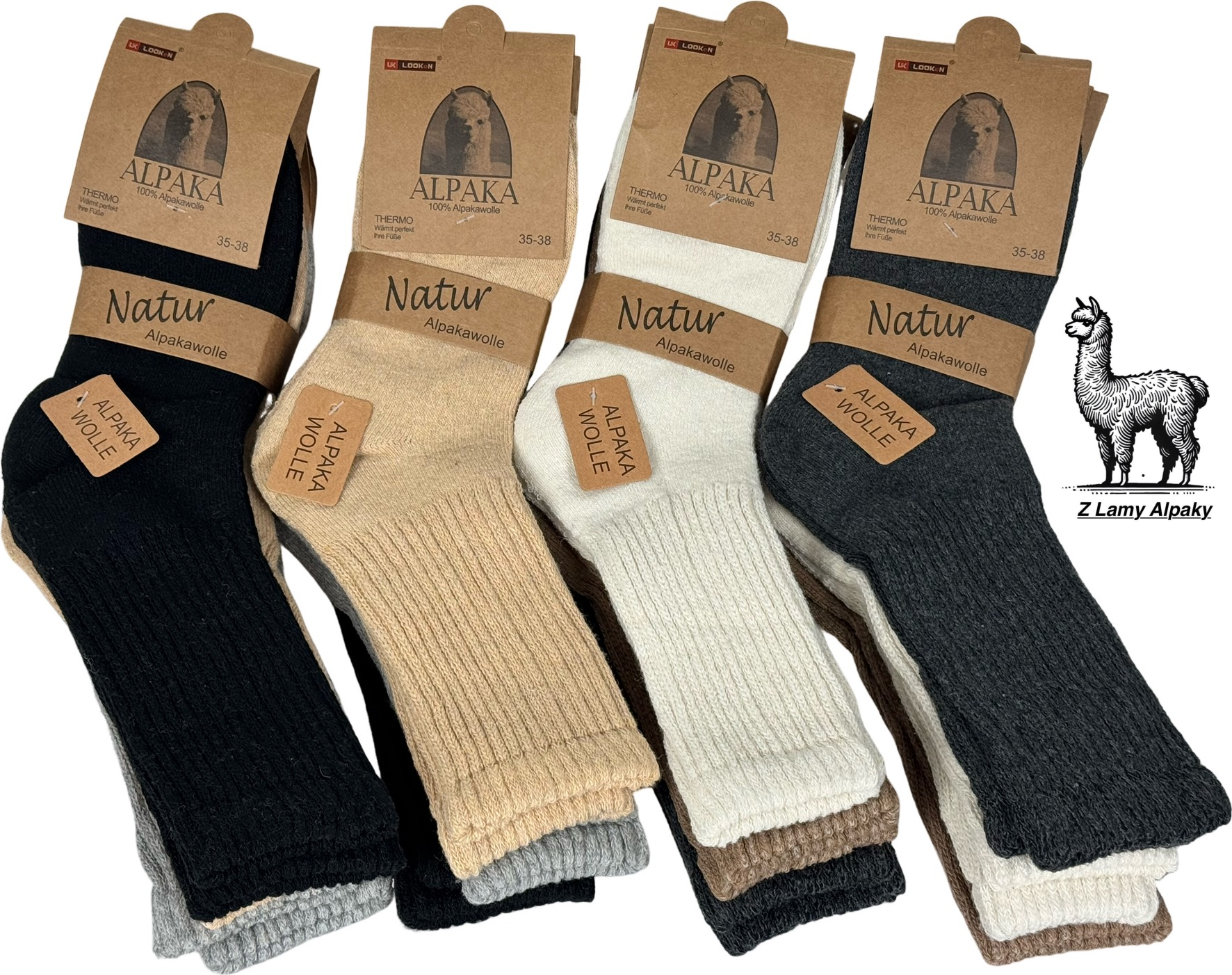 Užite si teplo a pohodlie s dámskymi ponožkami z alpačej vlny! Mäkké, hrejivé a priedušné ponožky z prírodnej alpačej vlny sú ideálne pre chladné dni pre maximálny komfort a voľnú cirkuláciu krvi.