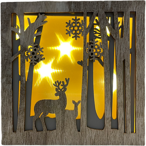 Farba svetla: biela tepláRozmery: 15x15x4 cmNapájanie: 2x AAA batérieMateriál: prírodné drevo