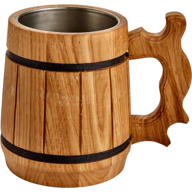 Pivní krýgel s vkládaným dnem uvnitř s nerezovou nádobou o objemu 0,5 l. Dřevěnný pohár s pěkně vyřezávanou dřevěnou rukojetí připomíná krpályvhodný k pití nápojů, nebo jako dekorační předmět, vhodný dárek pro muže pivaře, ideální na opékání buřtů v přírodě či při jiných outdoor aktivitách.