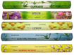 India je najväčší výrobca vonných tyčiniek na svete, čo v dôsledku znamená výber z naozaj nepreberné škály vôní. Dĺžka tyčinky: 23cm Balenie - uvedená cena je za: krabičku Počet kusov v balení: 20ks Indické tyčinky s bambusovou štiepok. Pri ich horení sa môžete stretnúť s veľmi širokým spektrom vôní, od prírodného santalu, cez kvetinové, ovocné, konopné, drevité vône, až po korenené (masalové) tóny. Tyčinky majú výraznejší typ vône a sú vhodné predovšetkým na vytvorenie príjemnej atmosféry a prevoňanie priestor. Cannabis: výťažok z prírodne pestovaného konope má výborné vlhkostné vlastnosti. Žiadne vedľajšie omamné účinky. Upokojuje myseľ a telo. Ópium: výťažok z maku je vhodný pre relaxáciu a upokojenie organizmu. Lemon: citrón je pre svoje osviežujúce účinky veľmi vhodný pri duševnej námahe, je účinný pri bolesti hlavy a infekciu dýchacích ciest. Aloe Vera: výťažok z Aloe Vera má výborné vlhkostné vlastnosti. Upokojuje myseľ a telo. Jasmine: jazmín povzbudzuje srdcovú činnosť, navodzuje eufóriu a optimizmus, pôsobí antidepresívne a tiež ako afrodiziakum. Lavender: levandule upokojuje a vrelo pôsobí na myseľ. Clove: klinček pomáha pri celkovej slabosti a svalovom vypätí. Cinnamon: účinky vonných látok škorice sú povzbudzujúce, zahrievajúce.