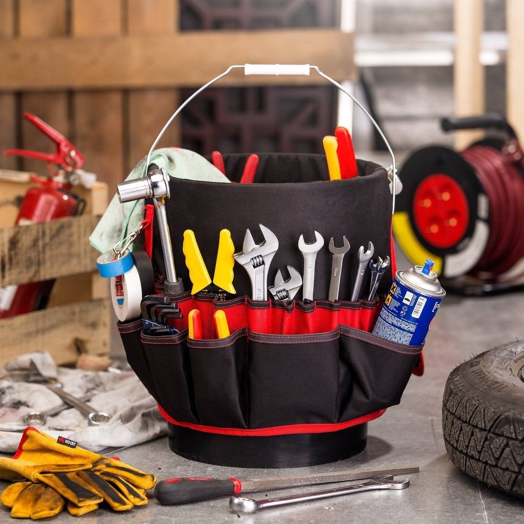 Vedierkový organizér na náradie bude praktickým pomocníkom nielen domácim majstrom, gazdinkám, ale aj opravárom, elektrikárom alebo záhradníkom. Organizér je možné vďaka jeho špeciálnemu tvaru nasadiť na klasické vedierko. Dookola sú umiestnené rôzne veľké vrecká, do ktorých môžete umiestniť všetky potrebné kľúče, skrutkovače, ceruzky a napríklad aj vŕtačku. Náradie tak budete mať prehľadne usporiadané a pri práci ho budete mať pekne po ruke.