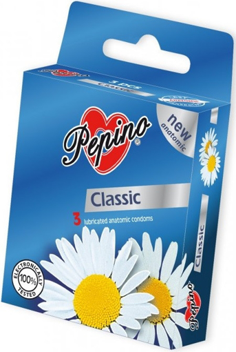 Predtým Pepino Basic, od 2016 pod názvom Pepino Classic. Základné kondómy bez vône, vrúbkov, farieb a ďalších efektov. Proste obyčajné kondómy. Osvedčený výrobca, lubrikované, v balení tri kusy. rozbor vlastností Uvedené na obale S rezervoárom Šírka 53mm podľa normy EN ISO 4074-200 Vlhčené silikónovým olejom 100% elektronicky testované Iba pre jedno použitie 3ks v krabičke Vyrobené v Thajsku Skladujte na suchom a chladnom mieste