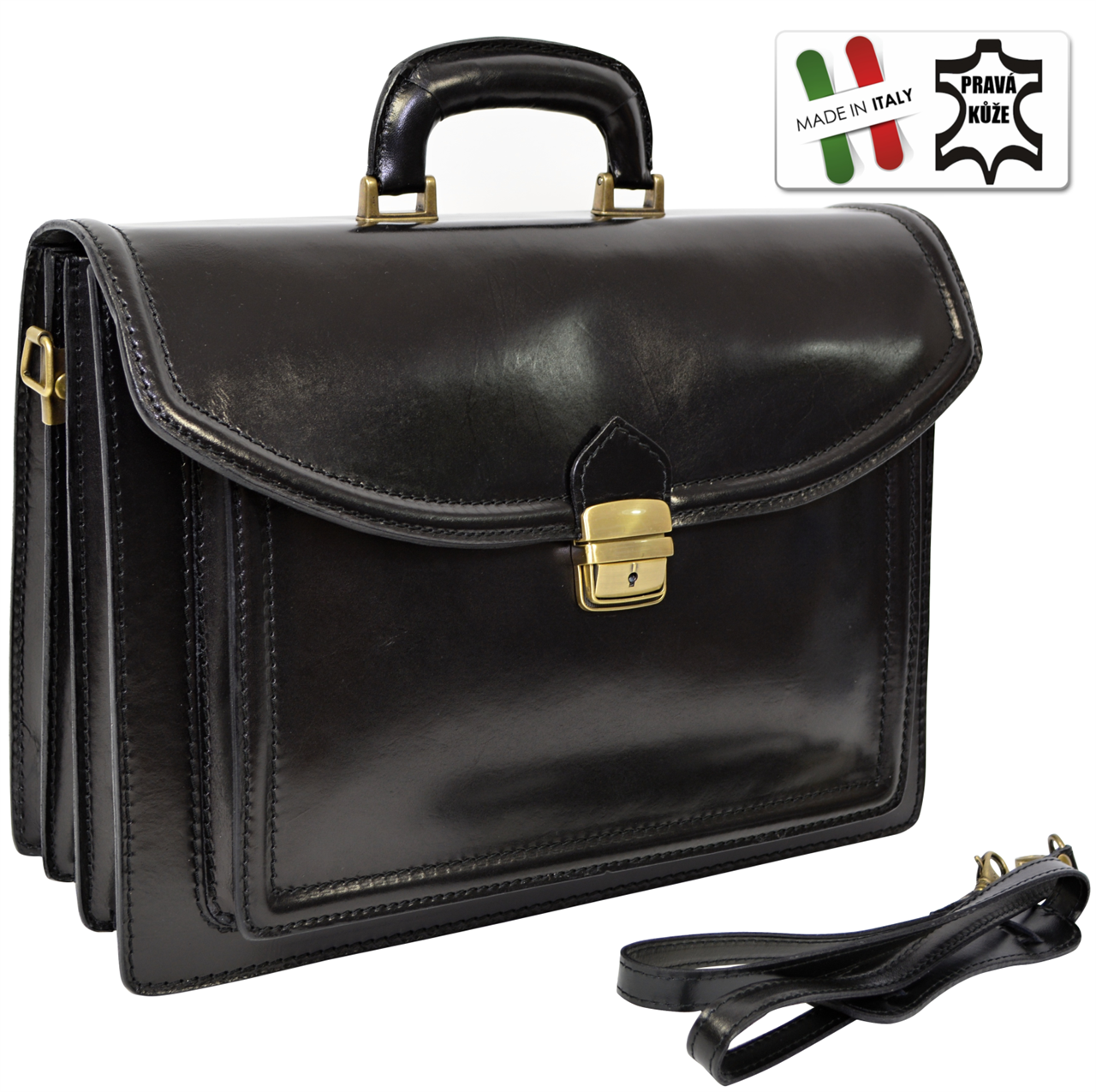 Je vyrobená z kvalitnej talianskej kože vyčinené podľa tradičných receptúr. Certifikovaná kvalita MADE IN ITALY. Kvalita kože zaručuje, že nosením sa taška stáva ešte atraktívnejší - koža sa vyhladzuje a vynikne tak jej prirodzená krása. Spojenie luxusného materiálu s určitými športovými prvkami predurčujú túto koženú tašku na každodenné nosenie nielen k manažérskemu obleku ale aj do práce na notebook a iné. Vzhľadom na umiestnenie v strede tašky sa táto uzatvárateľná priehradka javí vhodnú napríklad pre bezpečné nosenie notebooku. Kvalitné talianskej kovania na taške je zárukou dlhodobého a bezproblémového užívania tašky. Aktovka je Uzamykateľná. Možnosť pripojenia nastaviteľného popruhu (je súčasťou tašky), čo oceníte predovšetkým v situáciách, kedy potrebujete mať obe ruky voľné. Popis: 5 priestranných vnútorných priehradiek Všetky švy sú vykonané hrubú pevnou niťou Pripojený dĺžkovo nastaviteľný popruh uľahčuje nosenie cez rameno, upevnený pomocou kovovej úchytky Zámok klopy typu "klik-klak" taliansky výrobok Rozmery: 40 x 30 x 20 cm Výrobok uznávanej talianskej brašnárske firmy, najvyššia kvalita za rozumnú cenu. Potvrdená 2-ročnou zárukou Talianskym výrobcom.
