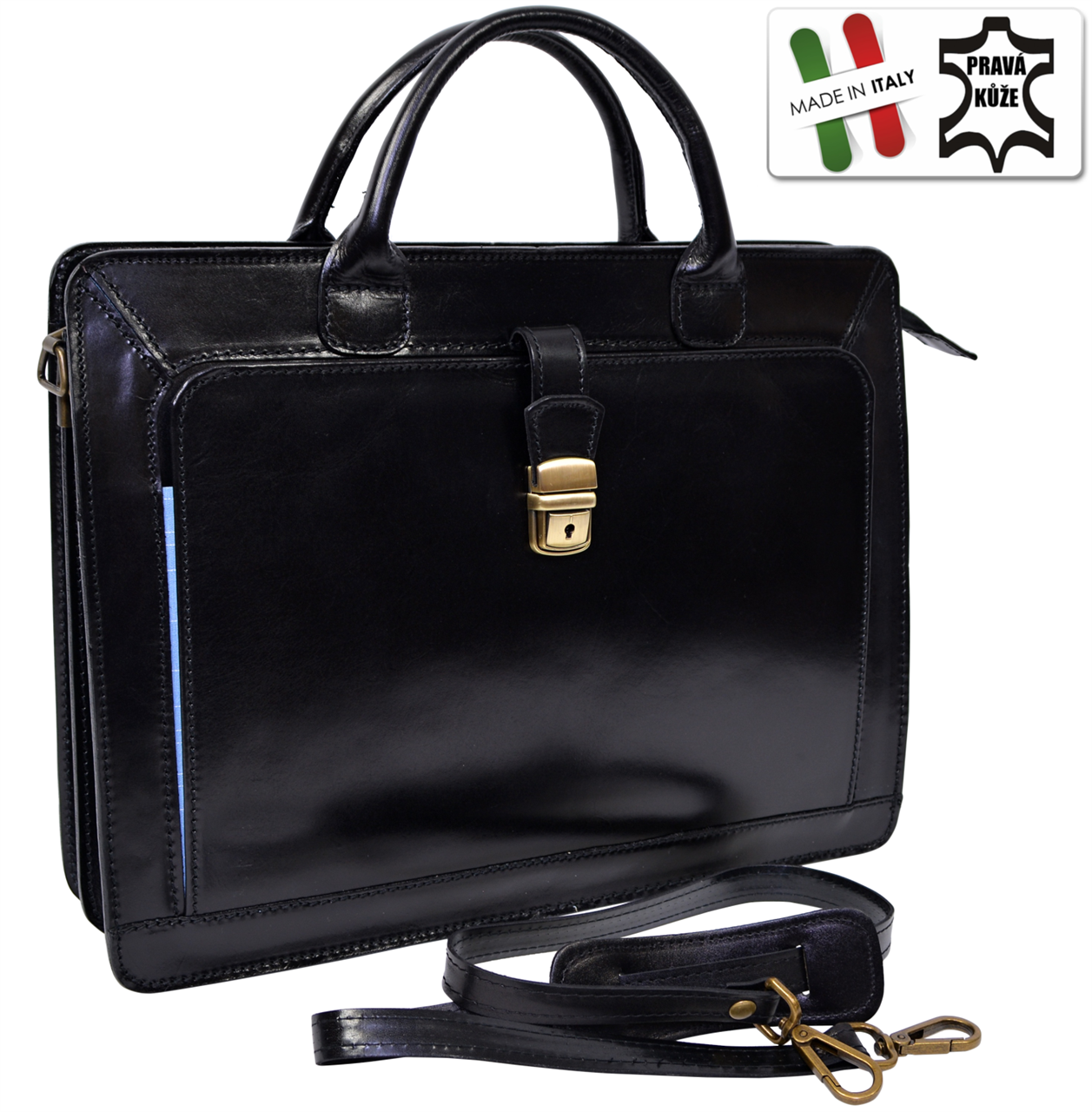 Je vyrobená z kvalitnej talianskej kože vyčinené podľa tradičných receptúr. Certifikovaná kvalita MADE IN ITALY. Kvalita kože zaručuje, že nosením sa taška stáva ešte atraktívnejší - koža sa vyhladzuje a vynikne tak jej prirodzená krása. Spojenie luxusného materiálu s určitými športovými prvkami predurčujú túto koženú tašku na každodenné nosenie nielen k manažérskemu obleku ale aj do práce na notebook a iné. Vzhľadom na umiestnenie v strede tašky sa táto uzatvárateľná priehradka javí vhodnú napríklad pre bezpečné nosenie notebooku. Kvalitné talianskej kovania na taške je zárukou dlhodobého a bezproblémového užívania tašky. Aktovka je Uzamykateľná. Možnosť pripojenia nastaviteľného popruhu (je súčasťou tašky), čo oceníte predovšetkým v situáciách, kedy potrebujete mať obe ruky voľné. Popis: 3 priestranné vnútorné priehradky Všetky švy sú vykonané hrubú pevnou niťou Pripojený dĺžkovo nastaviteľný popruh uľahčuje nosenie cez rameno, upevnený pomocou kovovej úchytky Zámok klopy typu "klik-klak" taliansky výrobok Rozmery: 40 x 30 x 10 cm Výrobok uznávanej talianskej brašnárske firmy, najvyššia kvalita za rozumnú cenu. Potvrdená 2-ročnou zárukou Talianskym výrobcom.