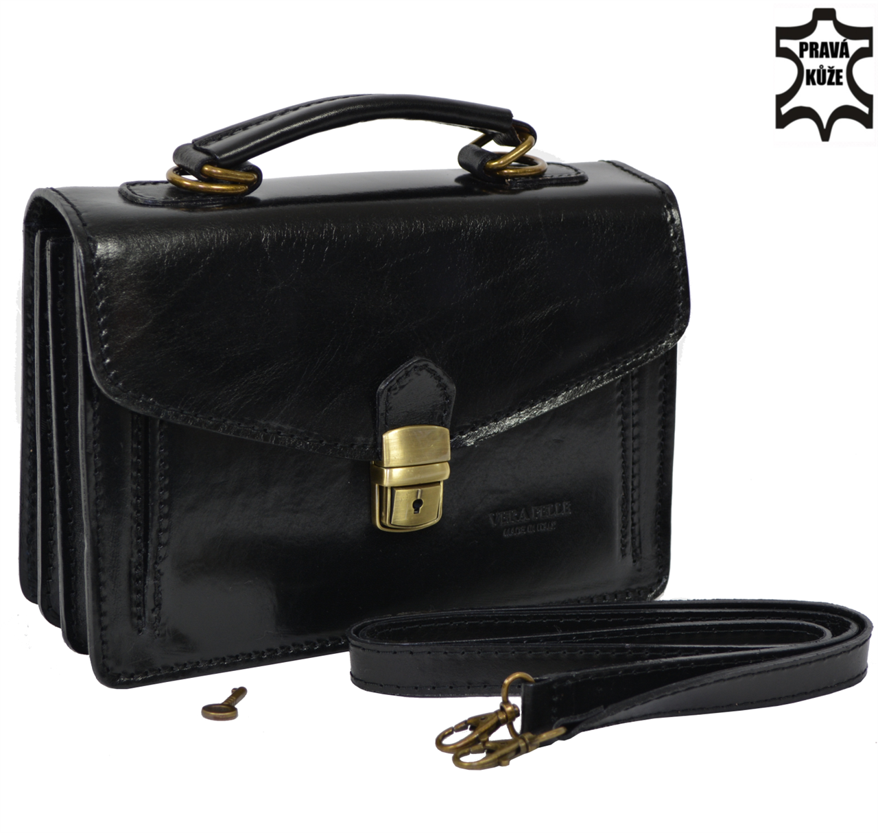 Dopřejte si luxus z kvalitní pravé kůže i Vy! Tuto kolekci jsme pro Vás přivezli přímo ze země, která udává módní trendy v celé Evropě, z prosluněné Itálie. Tato klasická elegantní pánská aktovka je jak velmi praktická, tak módní. Rozměry: šířka: 24cm, výška: 17cm, hloubka: 9cm, výška včetně popruhu: 21cm.Aktovka se neohýbá a drží stále svůj tvar. Uvnitř rozčleněna na tři přihrádky a menší kapsy vpředu i vzadu. Soušástí aktovky je také odnimatelný kožený popruh přes rameno. Aktovka je vyrobena z kvalitní pravé kůže.