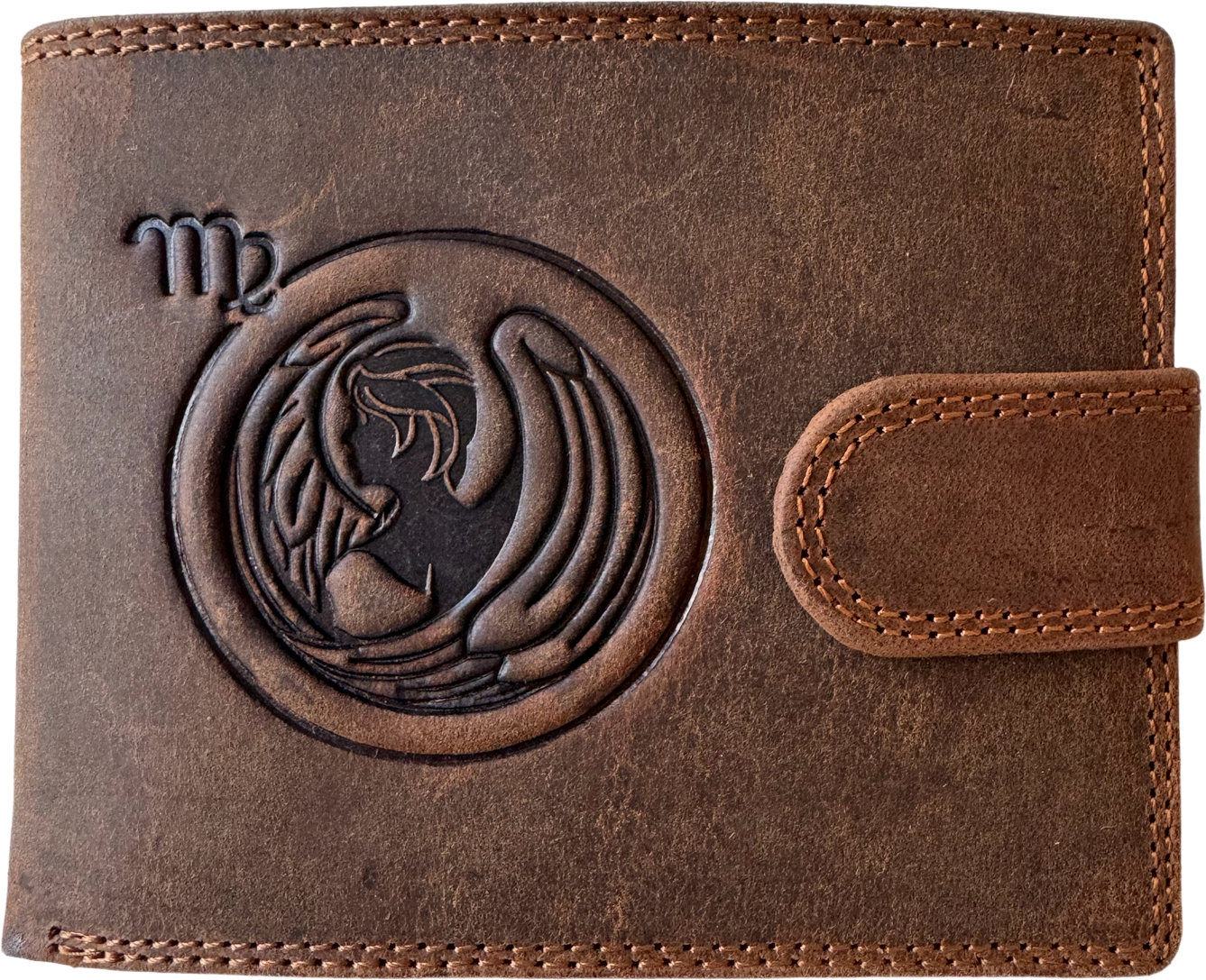 Hľadáte peňaženku, ktorá nielen splní všetky vaše praktické potreby, ale aj dokonale vystihne vašu osobnosť? Máme niečo špeciálne! Táto kožená peňaženka s rozmermi 12 cm x 10 cm x 3 cm kombinuje kvalitu, štýl ak tomu všetkému pridáva váš osobný dotyk – znamenie zverokruhu.