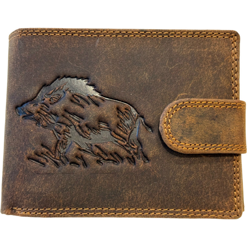 Kožená peněženka pro myslivce a lovce s motivem divokého prasete – 12 x 10 x 3 cm