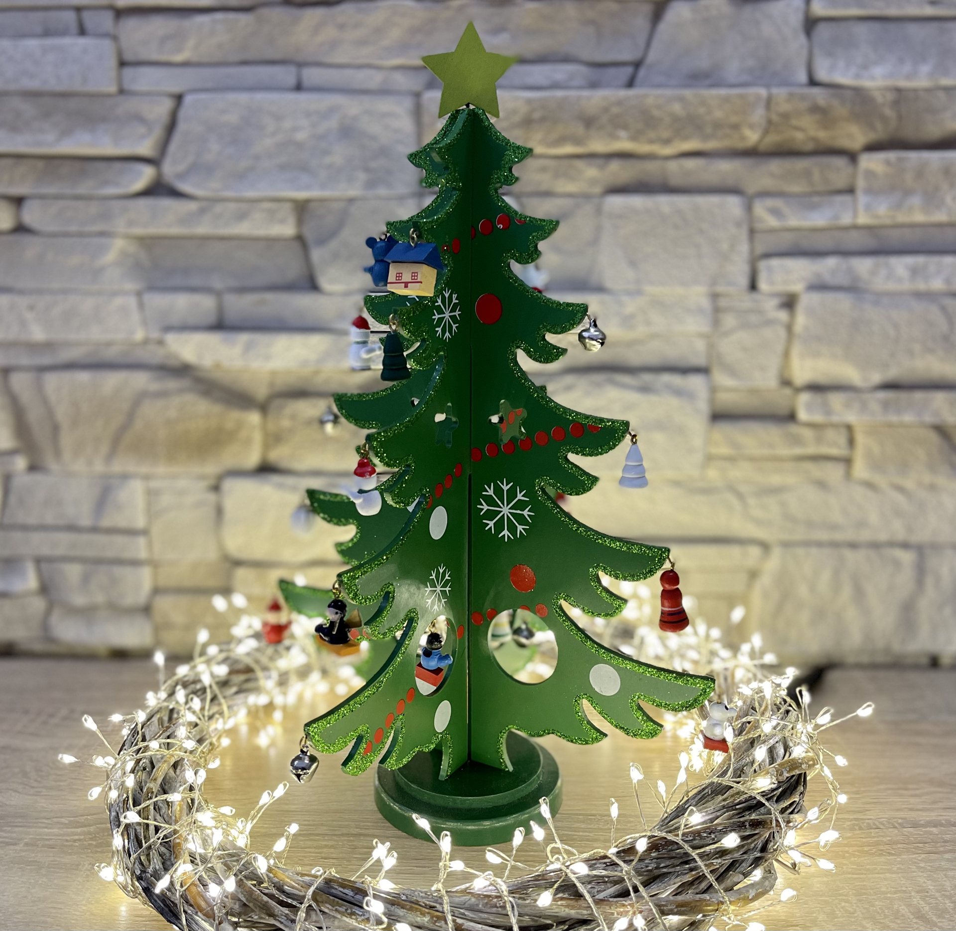 Súprava obsahuje 32 ks ozdôbVyrobené z dreva a kovuVek: nie je hračka - určené ako dekoráciaBalené v darčekovej krabičkeRozmer stromčeku: 35x27cm