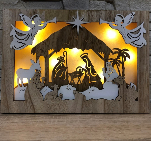 Nádherná drevená vianočná dekorácia. Vďaka batériovému napájaniu je všetko úplne bezpečné a nezávislé.