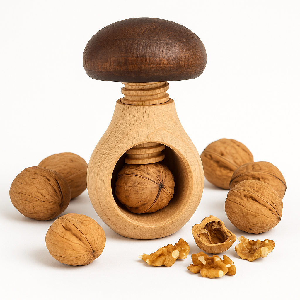 Pěkná dekorace ale i skvělý pomocník pro louskání ořechů. Stačí vložit ořech, zatočit lehce šroubem a žádná skořápka neodolá tlaku závitu.