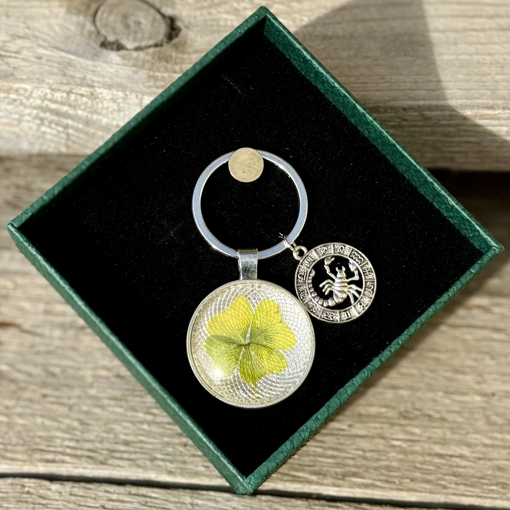 Exkluzívny prívesok na kľúče s pravým štvorlístkom a vašim znamením zverokruhu – Šťastie a osobný talizman v jednom!