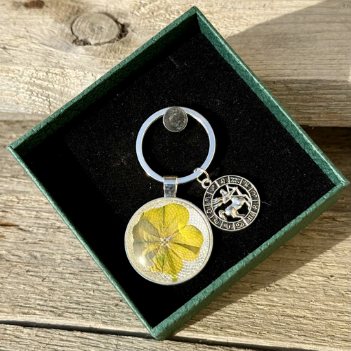 Exkluzívny prívesok na kľúče s pravým štvorlístkom a vašim znamením zverokruhu – Šťastie a osobný talizman v jednom!