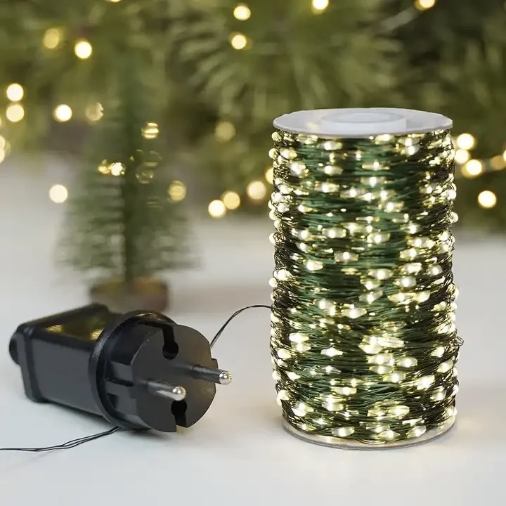 Tento dlhý svetelný reťaz na medenom drôtiku v zelenej farbe dokonale splynie s vetvami stromčeka či záhradnou dekoráciou. Na výber máte teplú bielu aj studenú bielu, aby ste vytvorili atmosféru presne podľa vašich predstáv. ✨ 1000 LED / 100 m – bohaté a rovnomerné osvetlenie 🎚️ 8 programov – rôznorodé svetelné efekty ⏱️ Časovač 6h ON / 18h OFF – automatické svietenie bez starostí 💾 Pamäť posledného režimu – po výpadku prúdu netreba znovu nastavovať 🔌 Sieťové napájanie – s dlhým prívodným káblom a transformátorom 🌧️ IP44 – bezpečné pre vonkajšie aj vnútorné použitie