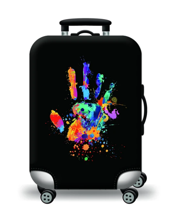 Tento obal na cestovný kufor má odvážny a farebný dizajn, ktorý pripomína škvrny farby alebo atramentu. Farebné škvrny a kvapky na čiernom pozadí vytvárajú dojem umeleckého diela v štýle akčnej maľby, čo je technika, ktorú preslávili umelci ako Jackson Pollock. Tento živý a abstraktný motív môže odrážať dynamického a tvorivého ducha cestovateľa.