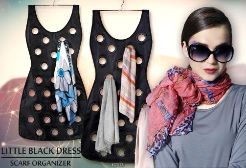 Závesný organizér na šatky môžete využiť aj na zavesenie šálov, šatiek aj kravát.Organizér je vyrobený z kvalitnej čiernej textílie a čierneho plastu okolo závesných otvorov.Organizér oceníte najmä pre prehľadnosť a usporiadanie do najmenších detailov .