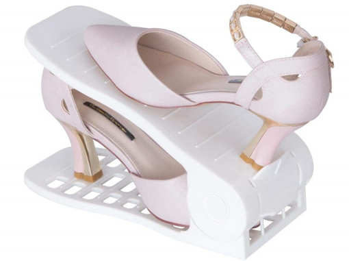 Jedna topánka tu a druhá nikde? Poznáte tento scenár až moc dobre? Hľadanie rovnakých topánok vás privádza k šialenstvu a pri odchode z domu vás to akurát tak zdržiava? Zatočte s týmto problémom! Kúpte si perfektný vychytávku v podobe plastového organizéra na topánky! Dodá vášmu botníku prehľadnosť a poriadok! A ušetrí miesto až o polovicu! Z veľmi jednoduchého dôvodu. Jednu topánku vložte do spodnej časti organizéra a druhú topánku na hornú časť. Horná časť je navyše doplnená protišmykovou vrstvou. Výška organizéra je nastaviteľná. Vďaka tomu je vhodný ako pre papuče, tak pre topánky s väčším objemom.