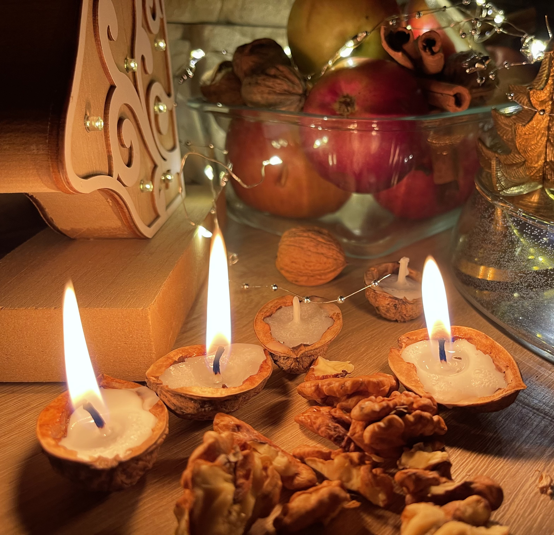 Skúste ručne vyrábané plávajúce sviečky z vosku a škrupiny vlašských orechov.