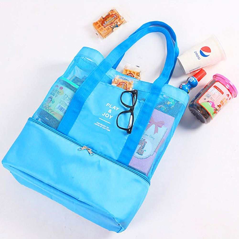 Plážová taška s termopřihrádkou je perfektním doplňkem k vodě! Taška nabízí dostatečný prostor, vejde se do ní spoustu věcí. Nejvíc však oceníte právě termopřihrádku se zapínáním na zip. Udrží nápoje nebo potraviny v chladu, což se v parných letních dnech hodí. Plážová taška má dva popruhy, lze ji tedy nosit na rameni. Skládá se z hlavní velké kapsy, menší kapsy, termopřihrádky a v té je ještě jedna menší kapsa. Do hlavní kapsy pak naskládáte plavky, knihu, časopisy, opalovací krémy, kšiltovku a spoustu dalších věcí. Do termoizolační pak potraviny nebo nápoje.