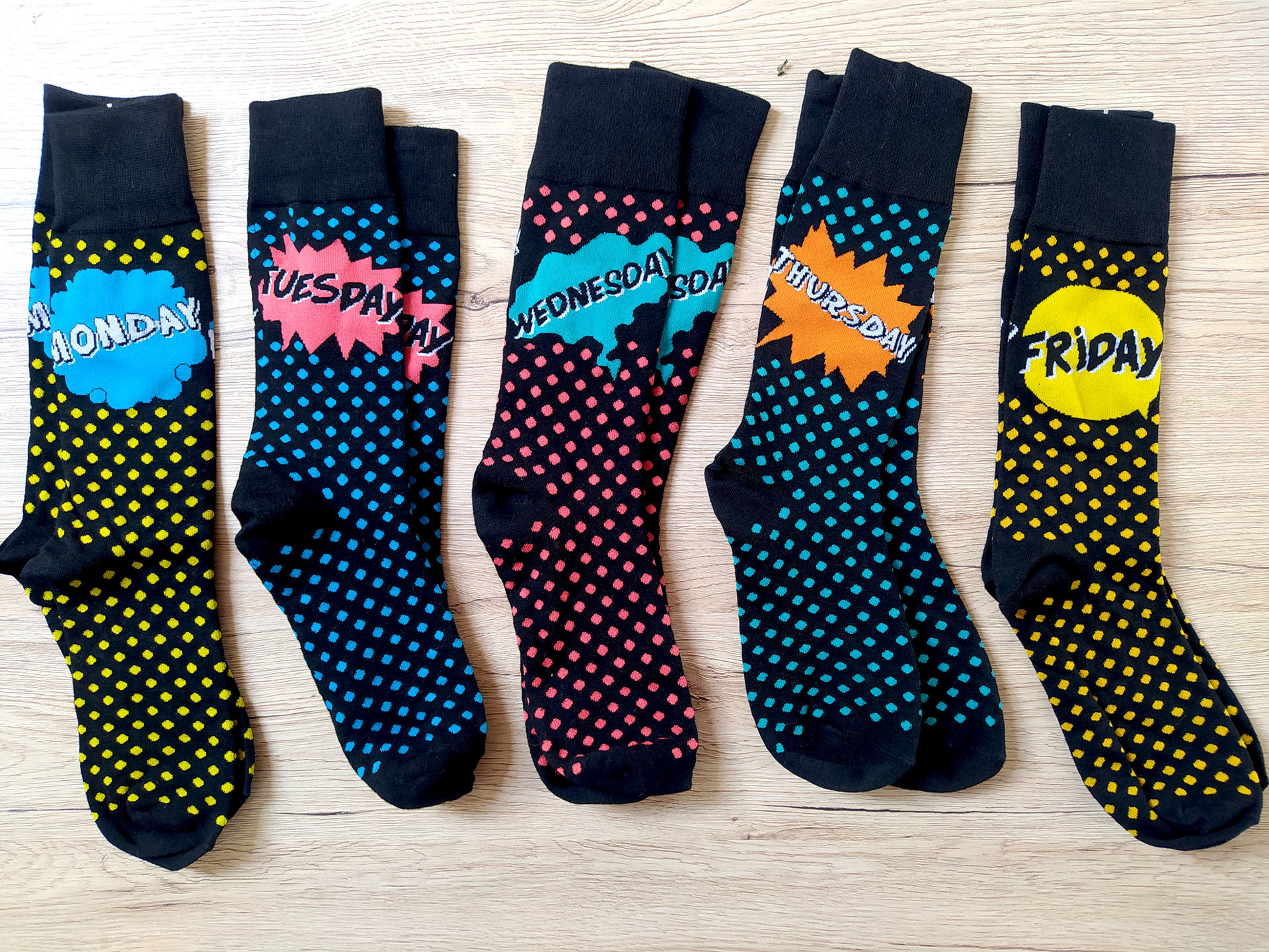 Pánske ponožky na každý deň v týždni doladia každý outfit. Nielen, že sú veselé a vtipné, ale vďaka tmavému prevedeniu ich vezmete naozaj kamkoľvek. Hodí sa vám ako do práce, tak na bežné nosenie. A to najlepšie na tom je, že máte presne predpísané, v aký deň v týždni si máte vziať ktoré. Na každý deň v týždni máte jeden pár, a nemusíte si lámať hlavu s výberom.Veselé a vtipné ponožky urobia dojem na vaše okolie. Sú vysoké, z príjemného materiálu a názvy dní sú písané v angličtine.bsah balenia:5x pár ponožiekTechnická špecifikácia:Veľkosť: univerzálna (max. EU 44)Materiál: bavlna, polyesterPánske ponožkyVysoké ponožkyVtipné a veselé ponožkyDni v týždni v angličtine