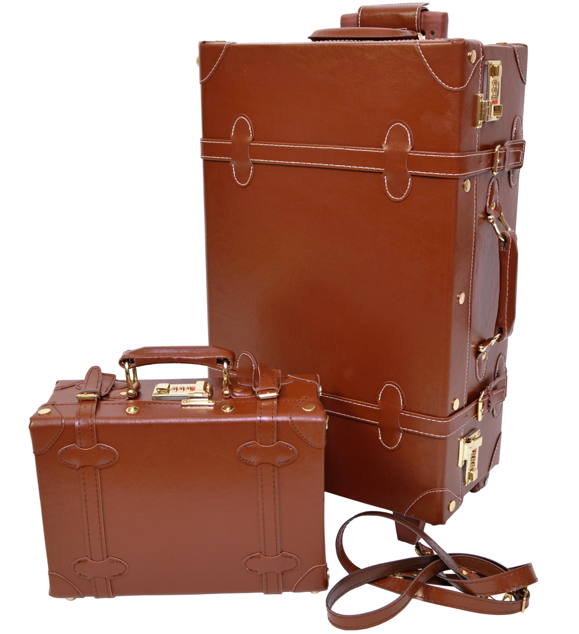 Veľmi štýlové a vkusné kufre na kolieskach v retro štýle.Sú potiahnuté veľmi kvalitnou jemnou ekologickou kožou príjemnou na dotyk.