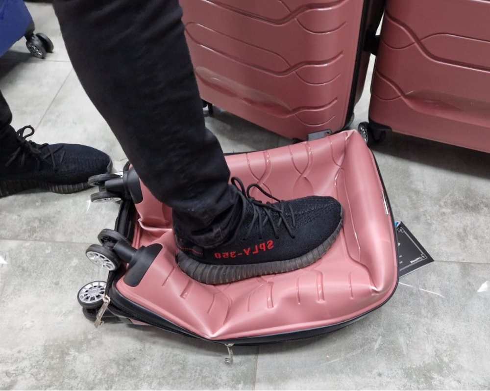 Naplnený kufor visí staticky po dobu 3 dní, v dynamickej časti testu je s plným kufrom 10 000 x prudko trhnuté.