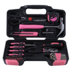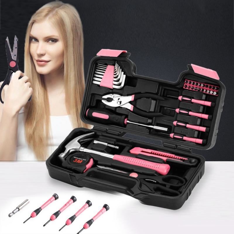 Týmto setom sa zavďačíte všetkým ženám kutilkám. Aj ženy potrebujú čas od času doma niečo spravit a nemusia sa vždy spoliehať na muža. Po takejto samostatnej ženy máme túto šikovnú a peknú sadu náradia. Sada obsahuje všetko potrebné pre drobné opravy: rôzne druhy skrutkovačov, kliešte, kladivko, nôž atď. Dohromady tu nájdete 39 kusov náradia. Všetko je zabalené v originálnom a odolnom čiernom kufríku. Celá sada je navyše navrhnutá vo vkusné a elegantné čierno-ružovej farbe. Obsah balenia: 8x šesťhranný skrutkovač (1.5 / 2 / 2.5 / 3/4/5 / 5.5 / 6mm) 20 x skrutkovač (3/4/5 / 6mm, PH1 / 2/3, PZ1 / 2/3, H3 / 4/5/6, T10 / 15/20/27/30) 4x skrutkovač (2.4m / 3mm / PH0 / PH1) 1x kliešte 1x kladivo 1x nožnice 1x meter 1x bitový konektor 1x nôž Technická špecifikácia: Materiál: oceľ (chróm-vanádium) Sada náradia 39v1 Farba: ružová Rozmery balenia: 31x 17x 8 cm Balené v originálnom kufríku, ktorý je ľahko prenosný Dizajn špeciálne navrhnutý pre dámy Vhodná pre domáce použitie odolný materiál