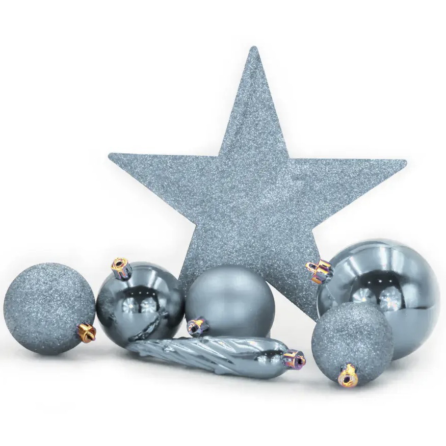 Sada vianočných gulí na váš stromček spolu so špičkou. Balenie obsahuje 33 kusov. Jedná sa o nerozbitné vianočné ozdoby zo silného ABS. Ozdoby sú elegantné a veľmi ľahké. Na výber máte z niekoľkých farebných kombinácií. Urobte si krásne Vianoce spolu s týmito krásnymi vianočnými ozdobami.