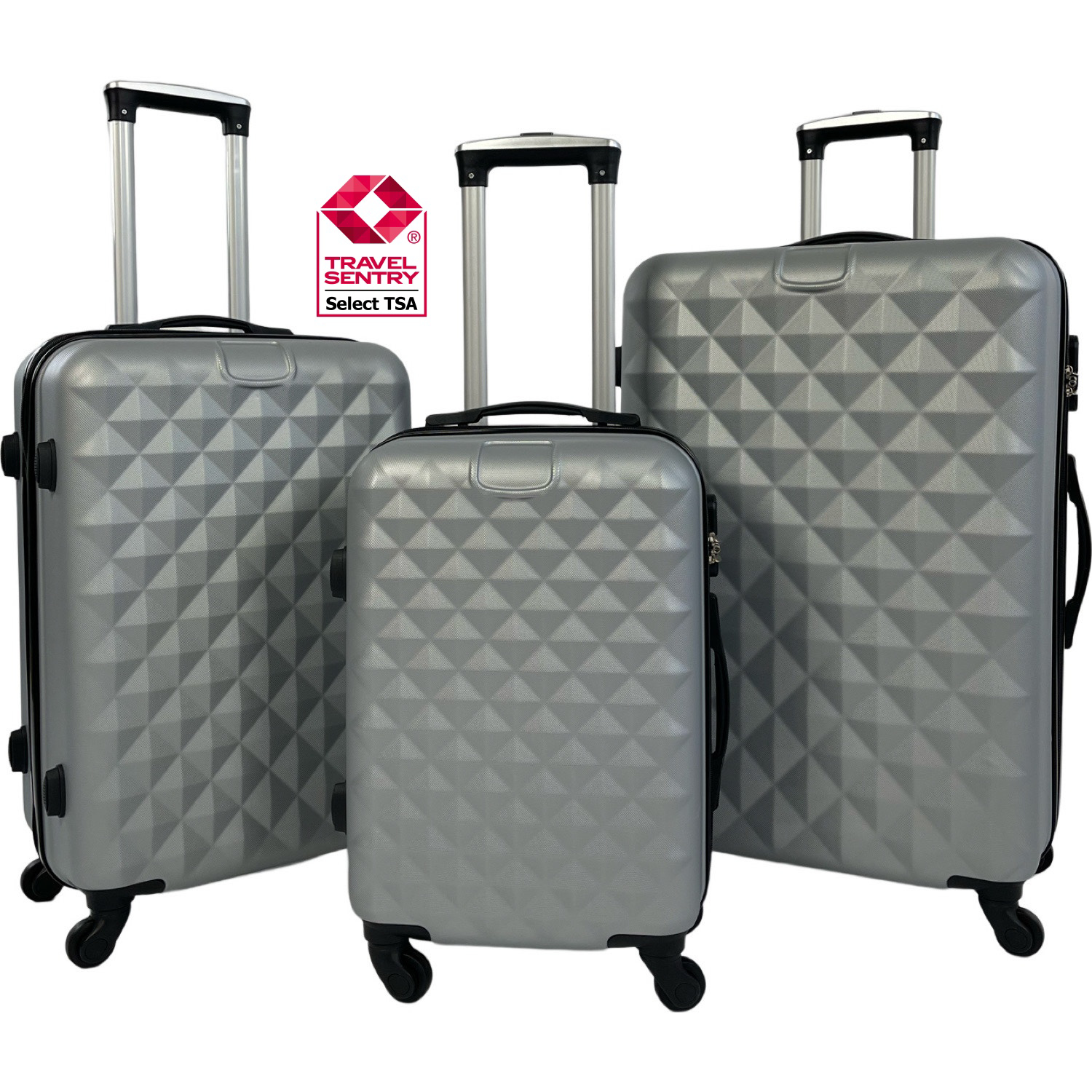 Cestovné kufre v modernom dizajne na dovolenku alebo na pracovnú cestu. Súprava troch kufrov je ľahká a pevná avšak keby niečo, poskytujeme všetky náhradné diely v prípade, že dôjde k akejkoľvek nehode.