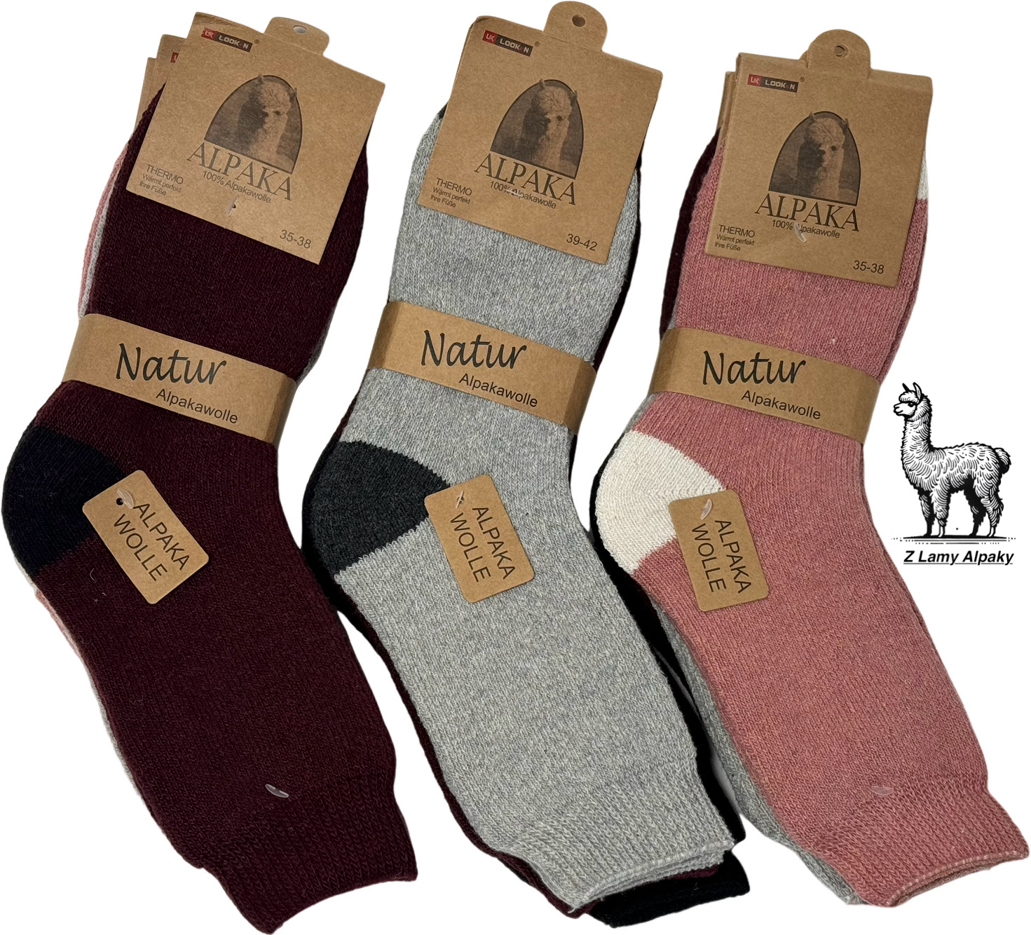 Súprava 3 párov termo ponožiek z pravej alpačej vlny, navrhnutá pre maximálne pohodlie a teplo počas zimných dní. Prírodný a luxusný materiál alpaka zaisťuje jemnosť, priedušnosť a dlhú životnosť. Tieto ponožky v elegantných tlmených farbách sú ideálne na chladné večery, každodenné nosenie aj ako krásny vianočný darček. Prineste si do zimy kúsok prírody a komfortu.