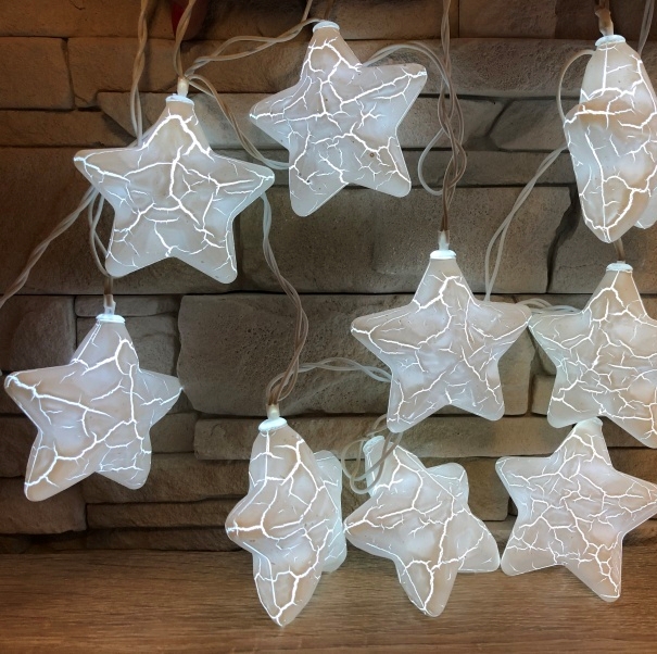 V balení je celkom 10 LED hviezdičiek, dĺžka žiarovkovej reťaze je 2,5 metra.