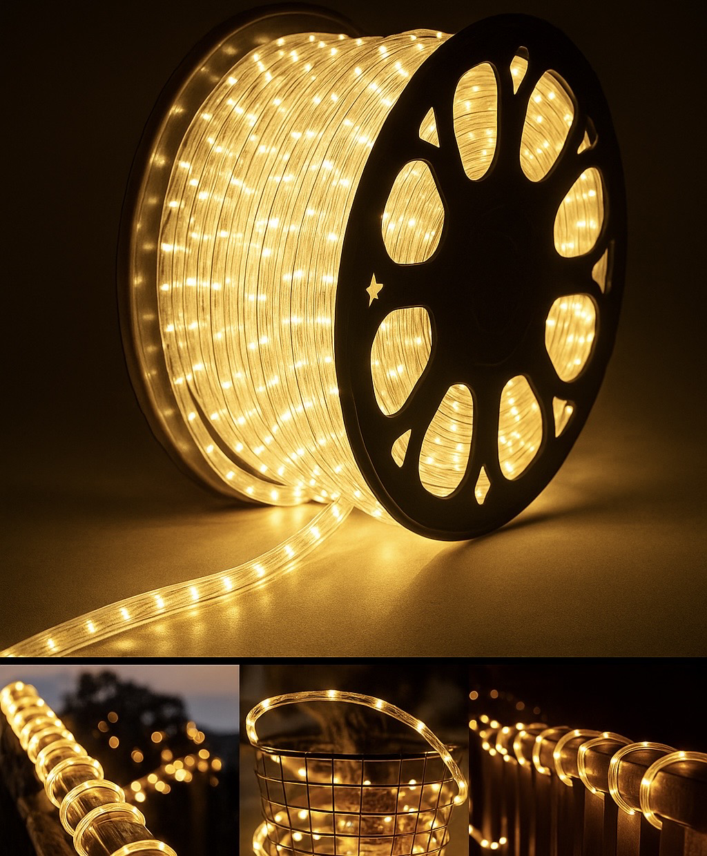 Osvetlenie - 100 m / 2500 LED diód. Vodeodolné vonkajšie osvetlenie vrátane prívodného kábla. Osvetlenie je možné použiť okamžite. Je ideálne ako na vnútorné, tak aj na vonkajšie použitie. Môžete ho použiť napríklad na výzdobu záhrady, balkóna, domu, záhradného stanu alebo vykúzliť atmosféru. Osvetlenie možno strihať po každých 2 m.
