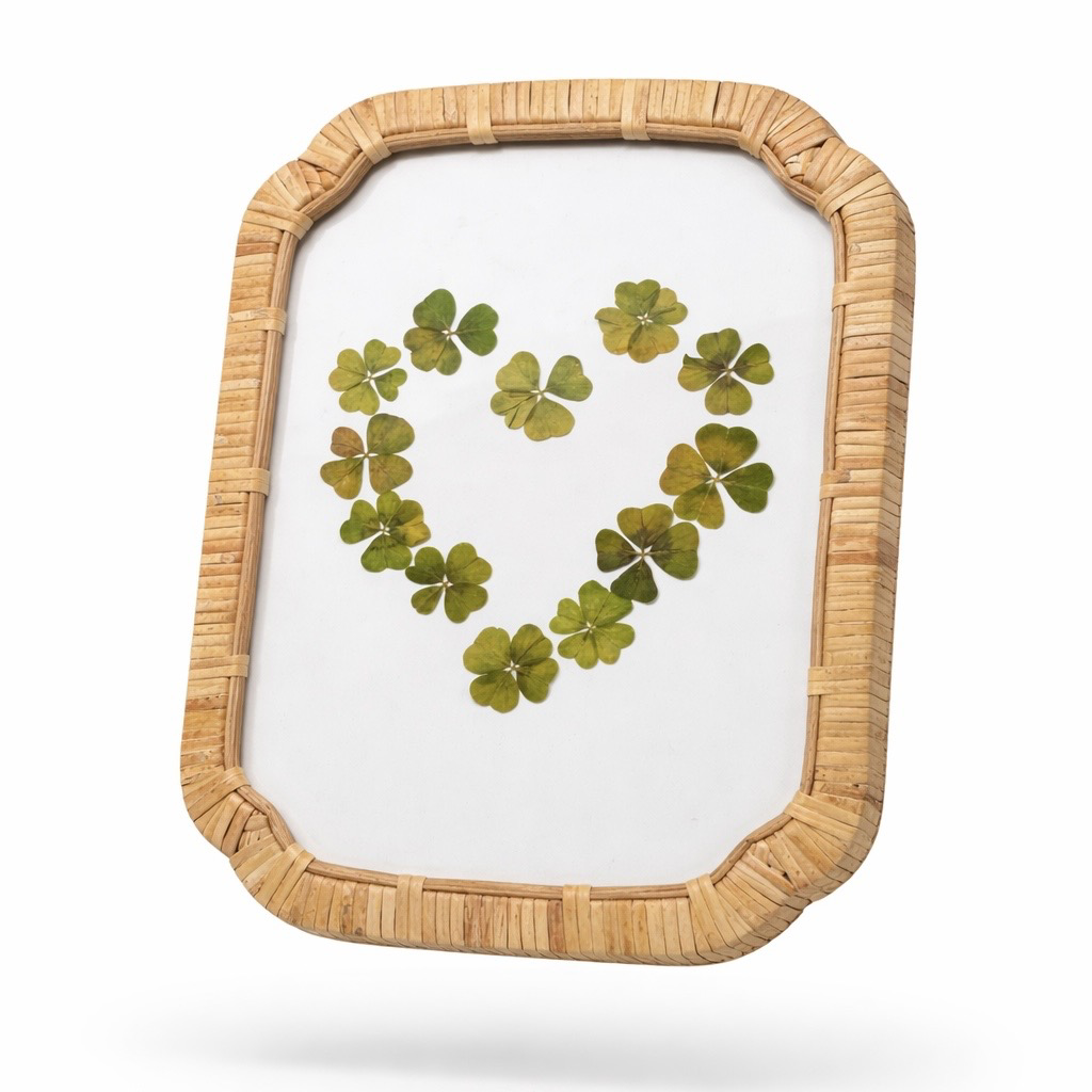 Přineste do svého interiéru jedinečnost a štěstí s touto nádhernou dekorací z 12 pravých čtyřlístků, pečlivě umístěných do tvaru srdce v luxusním dřevěném rámu o rozměrech 32 x 28 x 3 cm. Tato originální dekorace je ideálním doplňkem do vašeho domova nebo kanceláře a díky kombinaci pravých sušených čtyřlístků a kvalitního dřevěného rámu je nejen krásná, ale i odolná.