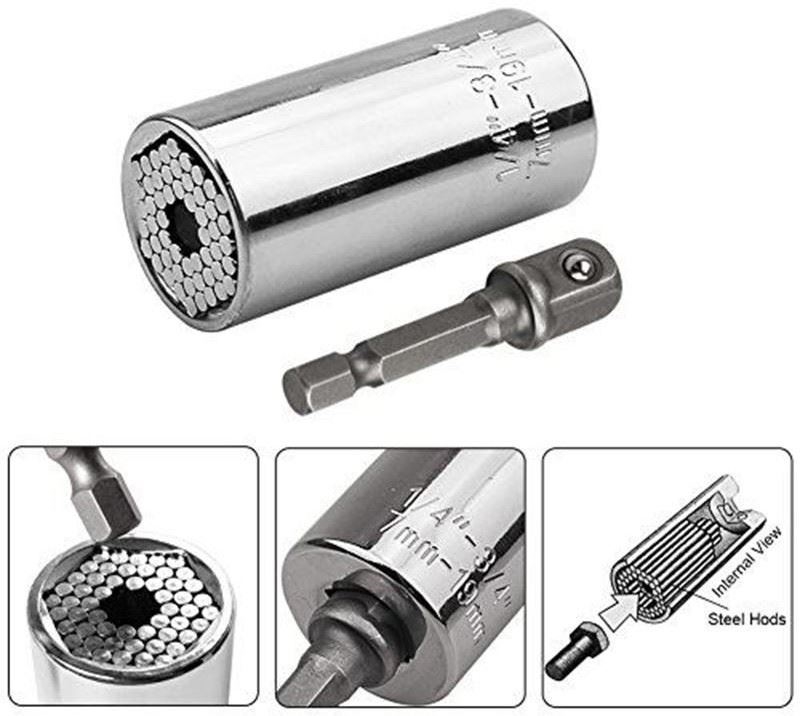 Tento univerzální klíč si oblíbí všichni kutilové, protože pasuje na všechny šrouby a matice v rozměrech 7 mm – 19 mm, navíc libovolného tvaru např. na šestihranné či čtvercové šrouby. Rychlošroub je přizpůsobivý, takže je vhodný i na různé šroubovací háčky, skoby atd. Nástavec i rychlošroub jsou vyrobeny z kvalitní nerezové oceli.