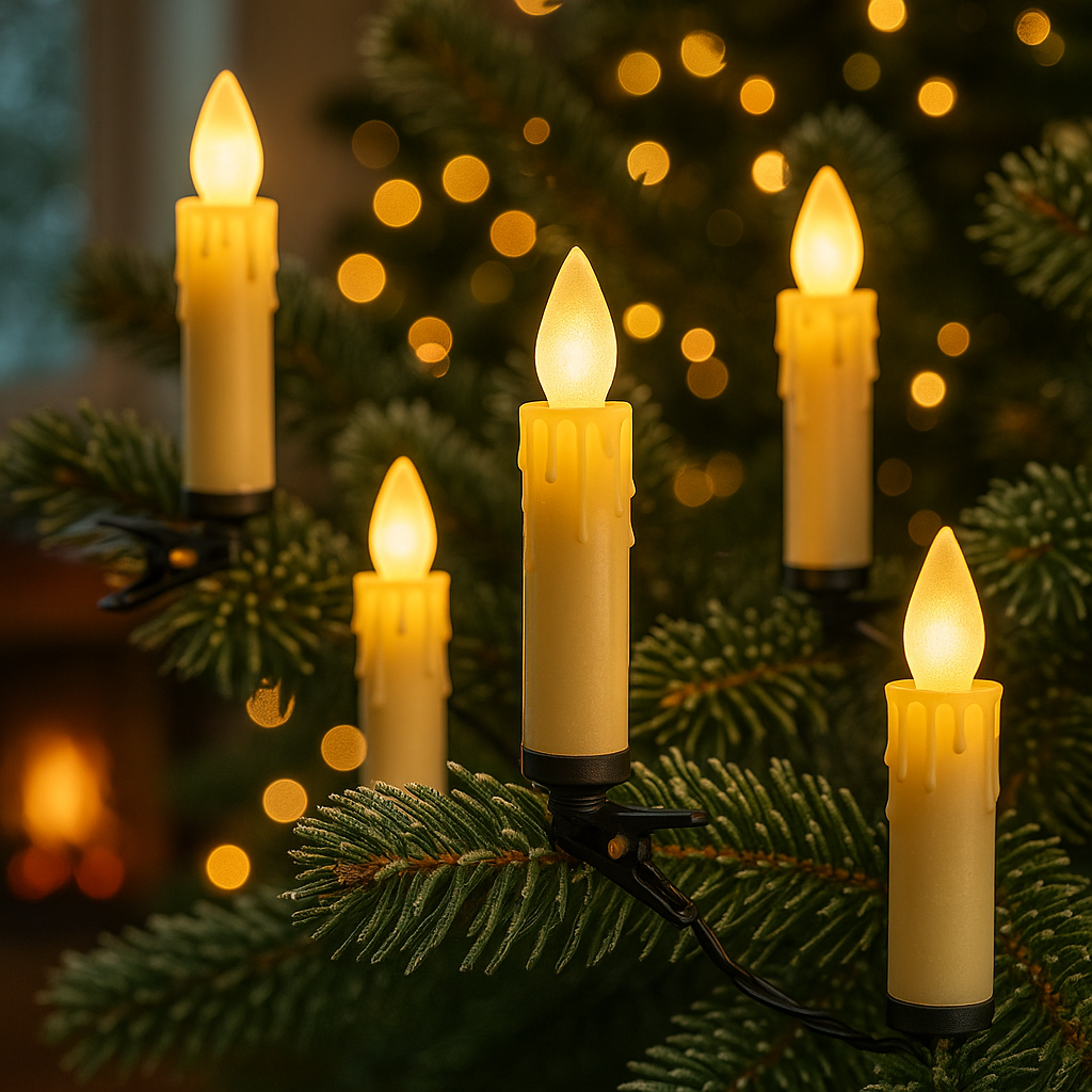 Vráťte stromčeku kúzlo klasických sviečok – bezpečne a úsporne. Tento reťazec s 20 plápolajúcimi LED sviečkami svieti príjemným teplým bielym svetlom a vďaka praktickým klipom ich prichytíte na vetvy behom chvíľky, bez poškodenia ihličia. Svietiaca časť má 6 m, sviečky sú od seba po 30 cm a k zásuvke vedie 3 m prívodný kábel – inštalácia je teda pohodlná aj na vyšších stromoch. LED diódy majú veľmi nízku spotrebu, nezohrievajú sa a zaisťujú dlhú životnosť aj príjemne realistický „plameňový“ efekt bez dymu a vosku.