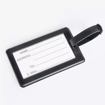 Jmenovka na zavazadla s vyjímatelným papírovým štítkem na zadní straně.
