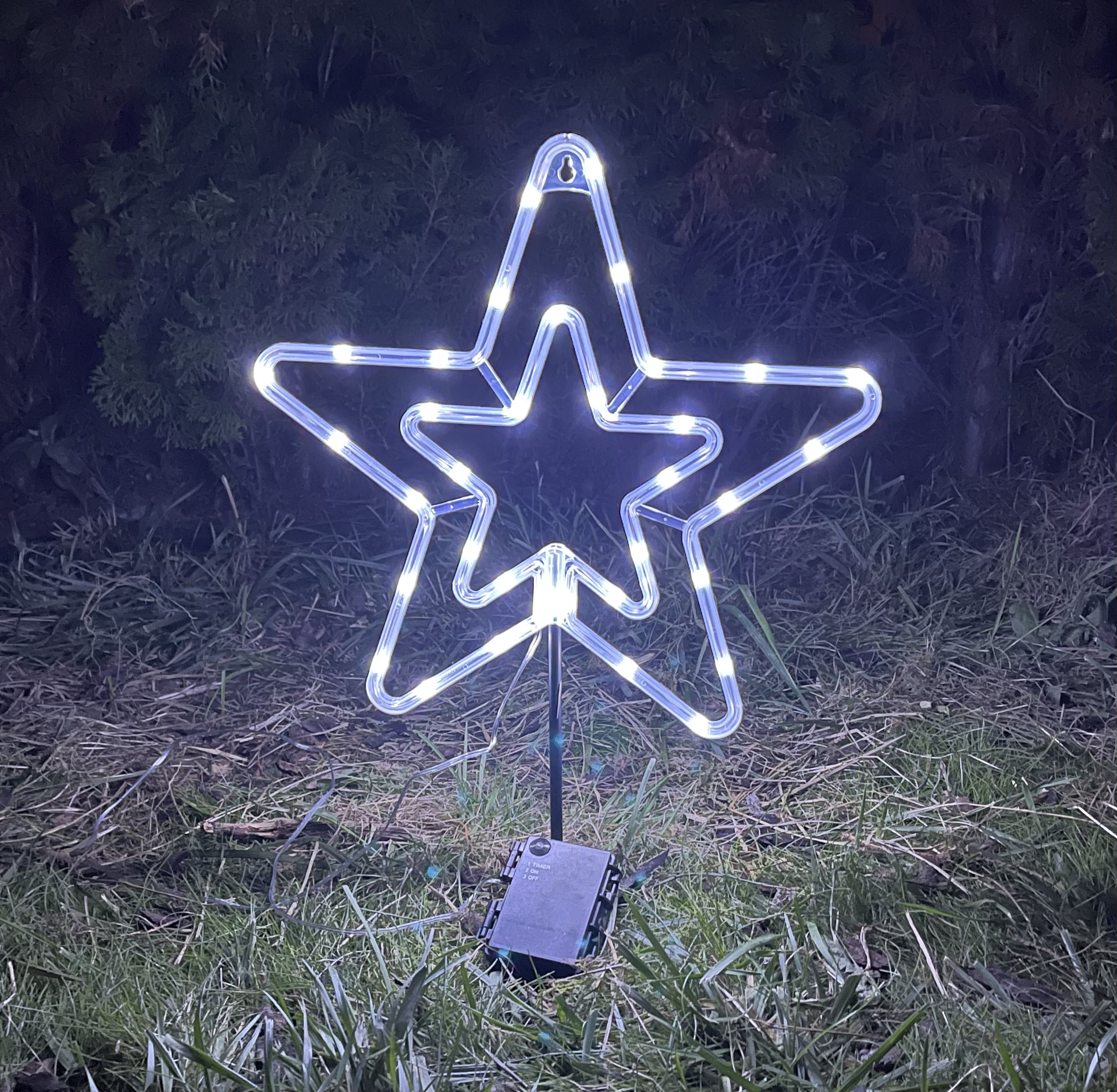Výška: hviezdy 35cm, hviezda s kolíkom do zeme 60cm