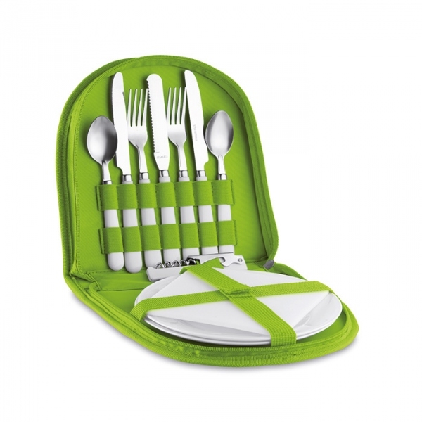 Pikniková sada pre dvoch s kvetinovým vzorom. Obsahuje 11 piknikových nástrojov.