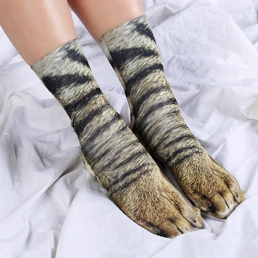 Predstavte si situáciu, kedy prídete na návštevu, vyzujete topánky a miesto obyčajných čiernych alebo bielych ponožiek vykuknú spod nohavíc roztomilé mačacie pacičky! Priatelia iste ocenia váš cit pre štýl a originalitu, a zaiste tiež všetky pobavíte. Ponožky môžu nosiť ženy aj muži, sú vyrobené v univerzálnej veľkosti a príjemné na nosenie. Originálne ponožky odporúčame ako vtipný darček pre všetkých milovníkov malých šeliem.